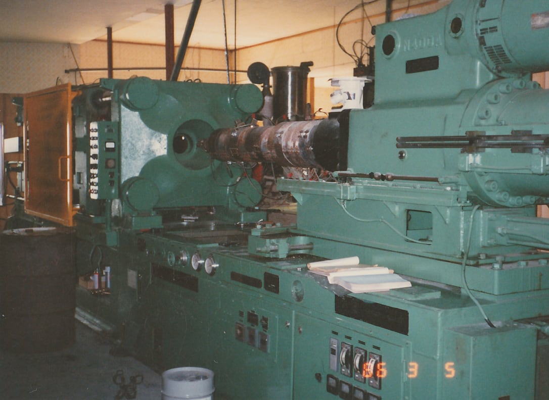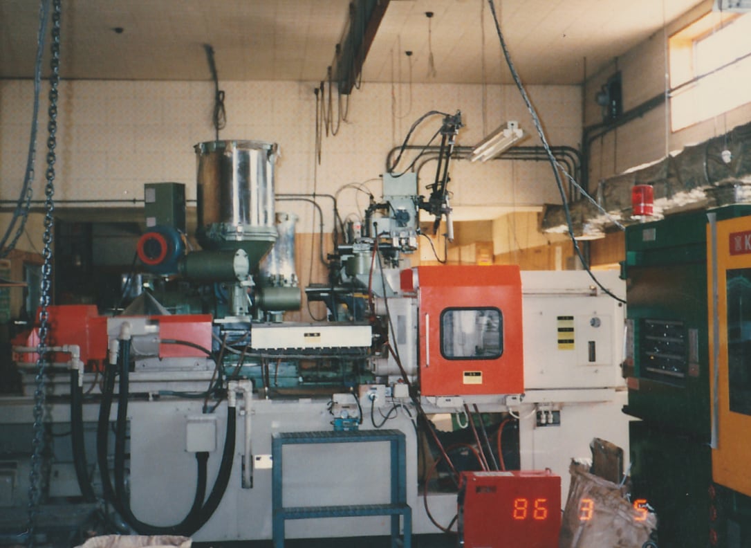 - 中古射出成形機(150トンクラス)を5台導入し、弱電プラスチック製品の製造を始める